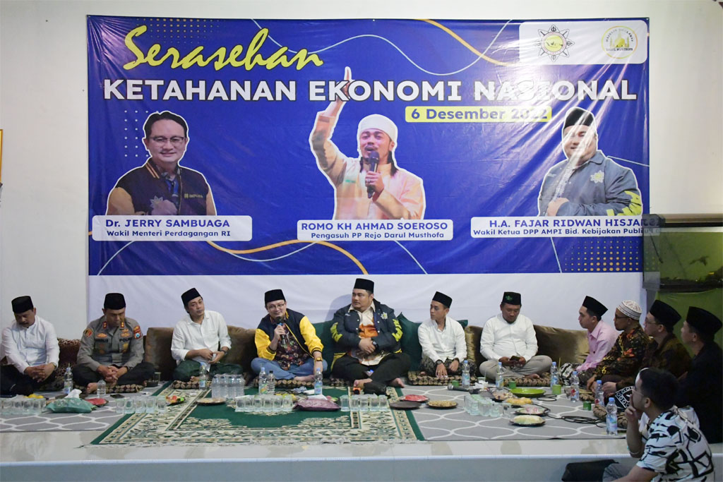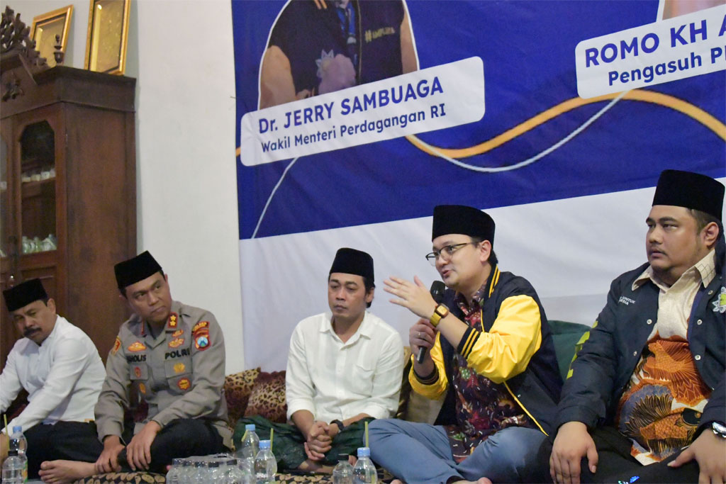 Wakil Menteri Perdagangan, Jerry Sambuaga menjadi pembicara pada Saresehan Ketahanan Ekonomi Nasional dengan tema “Pemberdayaan Ekonomi Pesantren” yang berlangsung di Pondok Pesantren Rejo Darul Musthofa, Kecamatan Gondanglegi, Kabupaten Malang, Jawa Timur, Selasa (6 Des).
