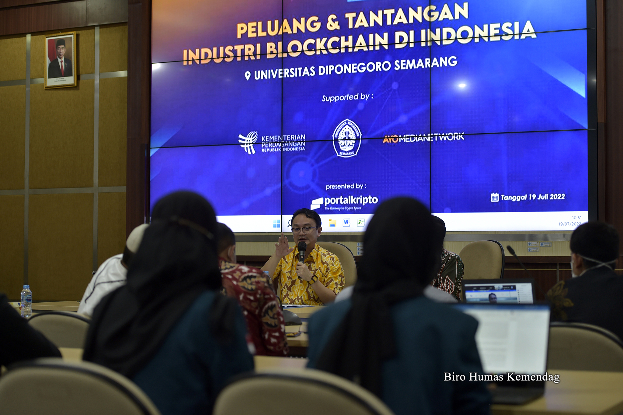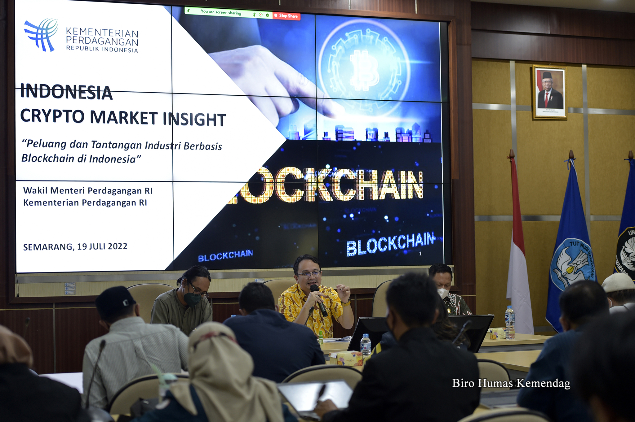 Wakil Menteri Perdagangan, Jerry Sambuaga menjadi narasumber pada seminar Block#1 Goes to Campus dengan tema “Peluang dan Tantangan Industri Blockchain di Indonesia” yang berlangsung di Universitas Diponegoro, Semarang, Jawa Tengah, Selasa (19 Juli).