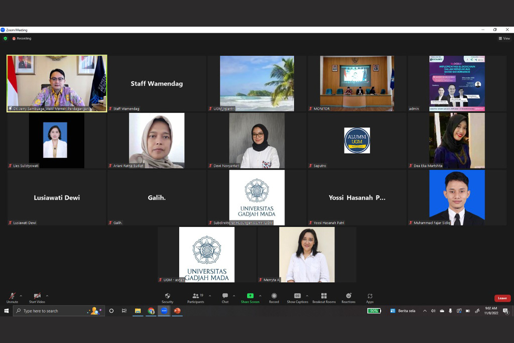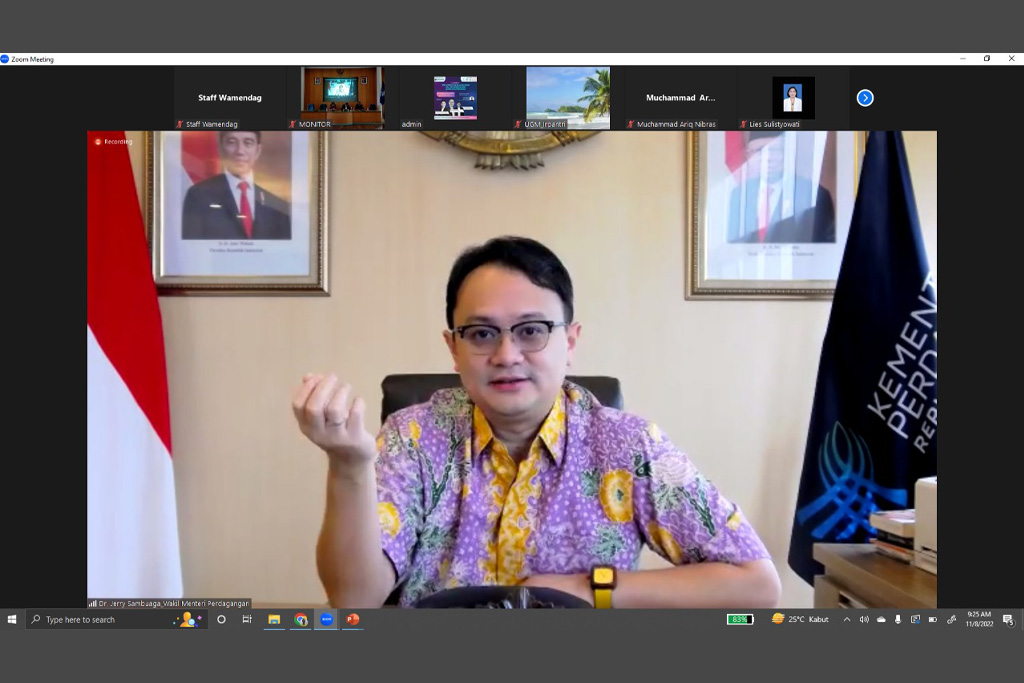 Wakil Menteri Perdagangan, Jerry Sambuaga menjadi narasumber pada Seminar Portalkripto: The Gateway to Crypto Space dengan tema "Blockchain Sebagai Katalis Pertumbuhan Ekonomi Digital Indonesia" yang dilaksanakan secara virtual, Selasa (8 Nov).