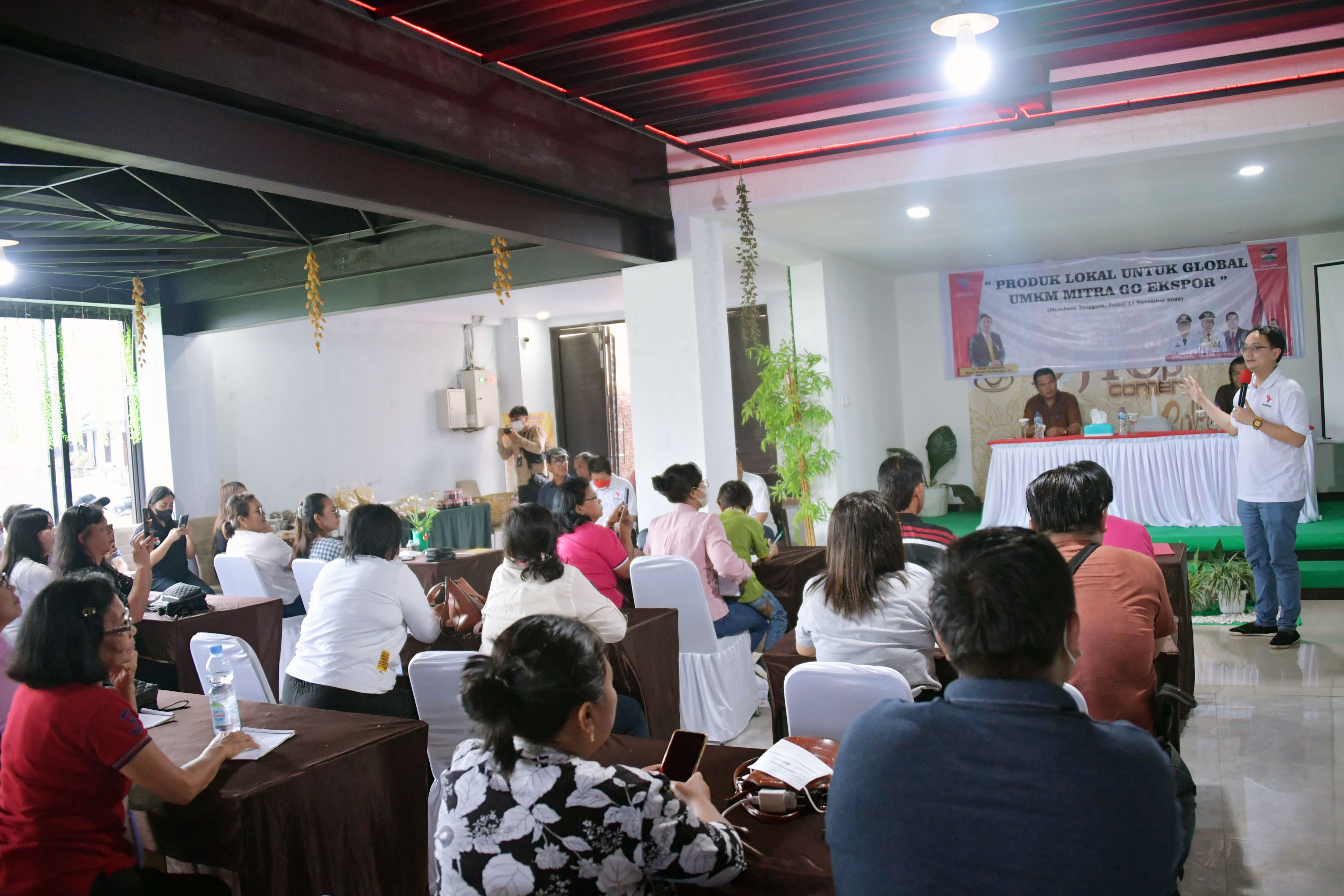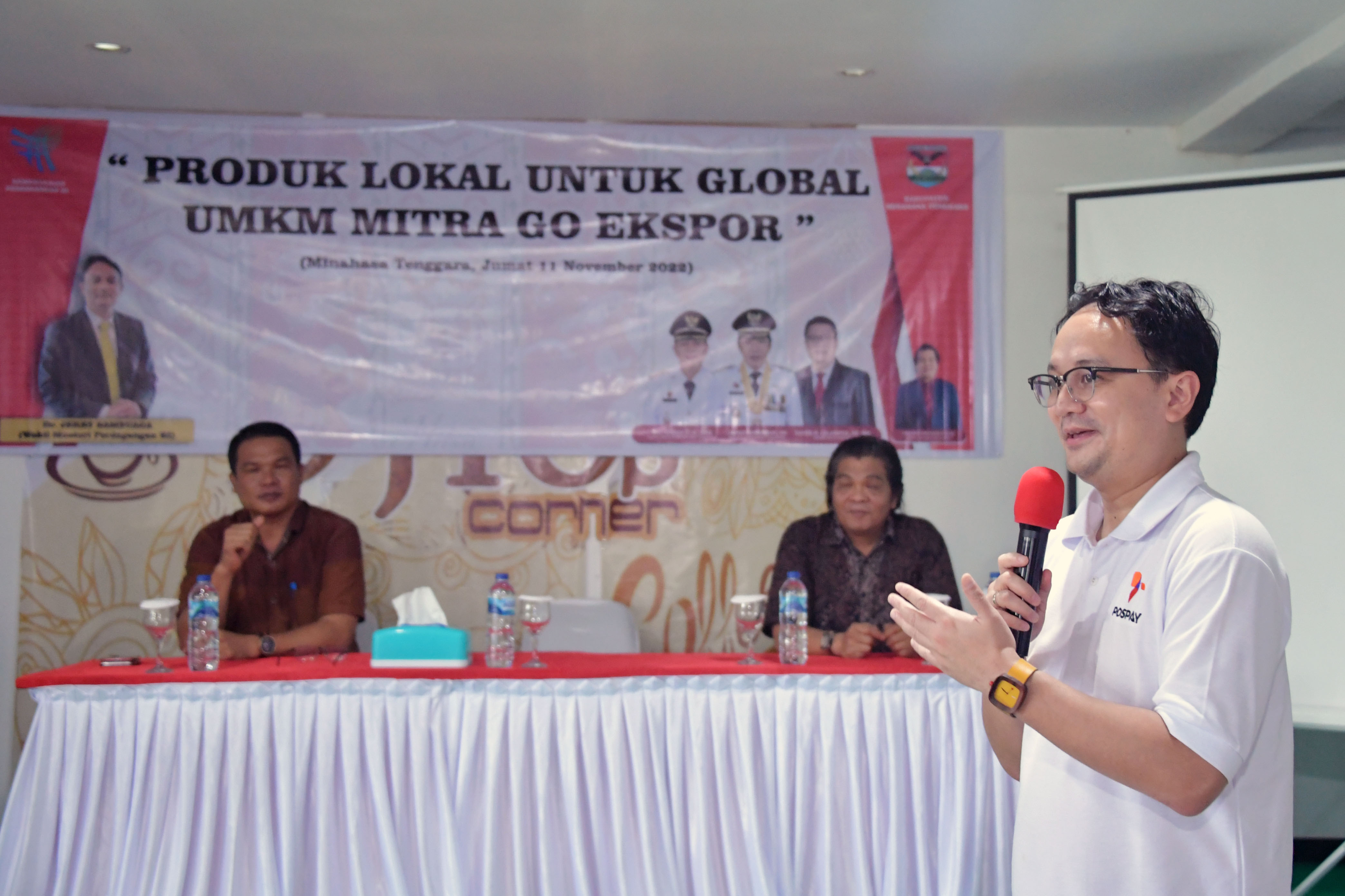 Wakil Menteri Perdagangan, Jerry Sambuaga menjadi pembicara pada Sosialisasi Produk Lokal untuk Global dengan tema “UMKM Mitra Go Global” yang diselenggarakan oleh Dinas Perindustrian, Perdagangan, dan Koperasi Kabupaten Minahasa Tenggara di Ratahan, Sulawesi Utara, Jumat (11 Nov).