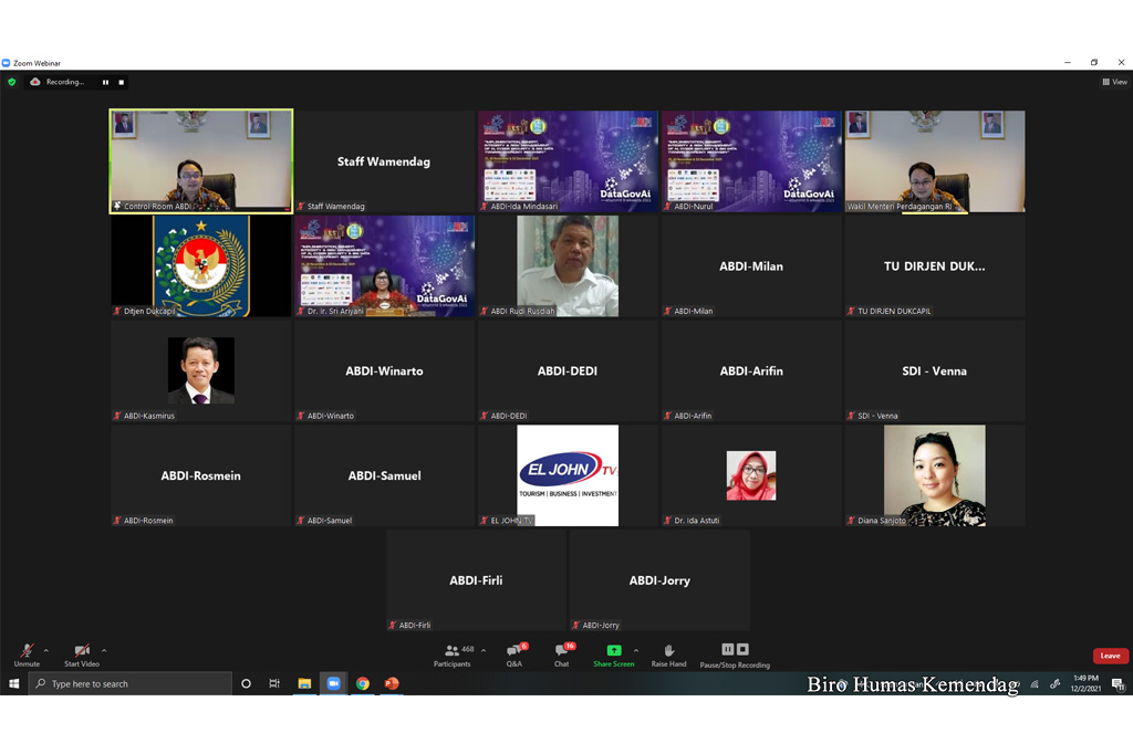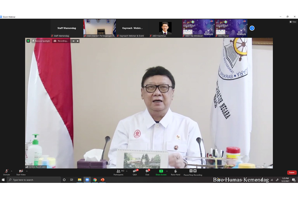 Wakil Menteri Perdagangan, Jerry Sambuaga menjadi narasumber pada WebSummit DatagovAI 2021 secara virtual, Kamis (2 Des). Acara ini dibuka oleh Menteri Pendayagunaan Aparatur Negara dan Reformasi Birokrasi, Tjahjo Kumolo.