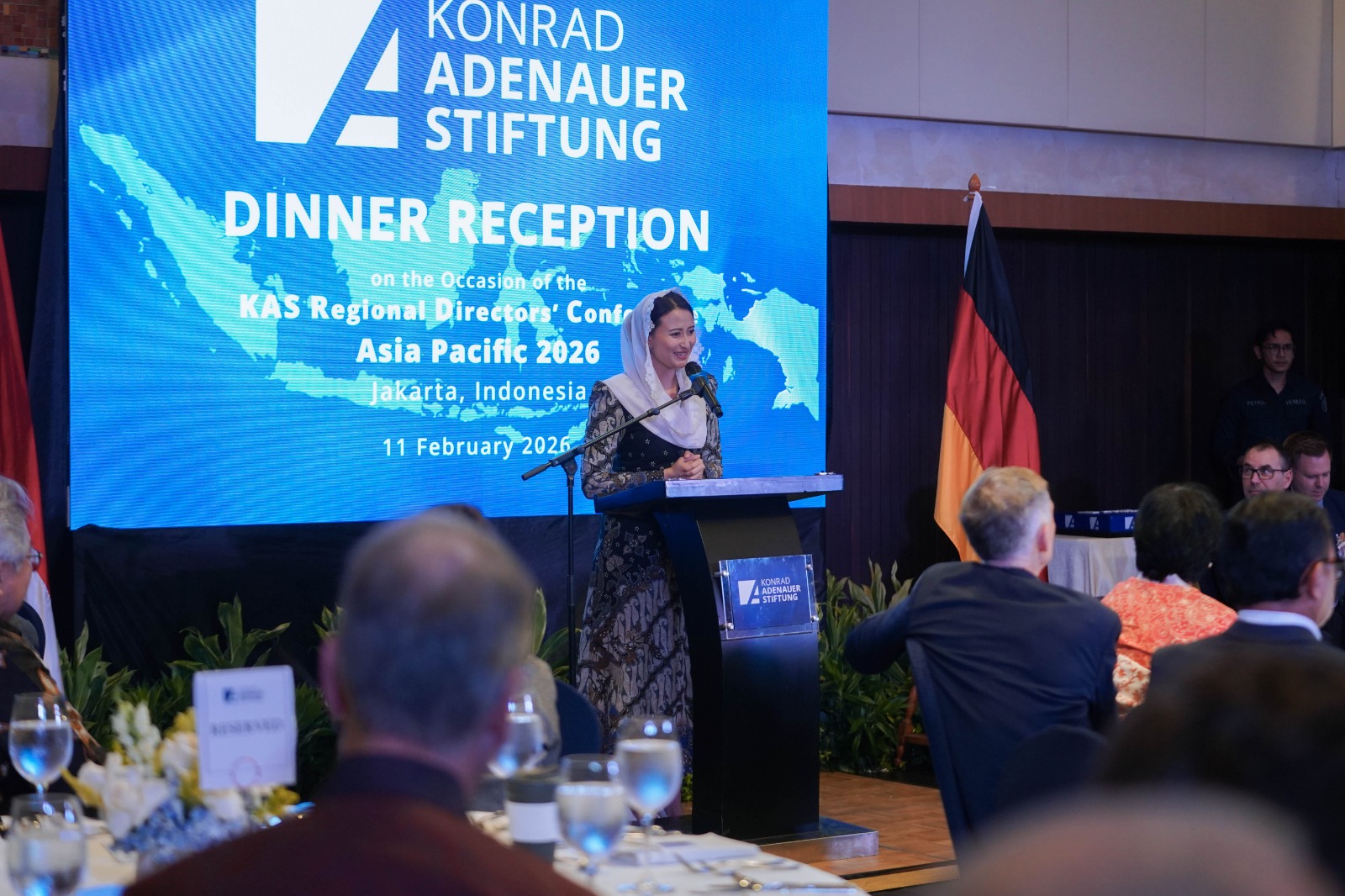 Wamendag RI, Dyah Roro Esti memberikan pidato kunci pada Konrad-Adenauer-Stfitung (KAS) Regional Directors’ Conference - Asia Pacific 2026 di Jakarta, Rabu (11 Feb).