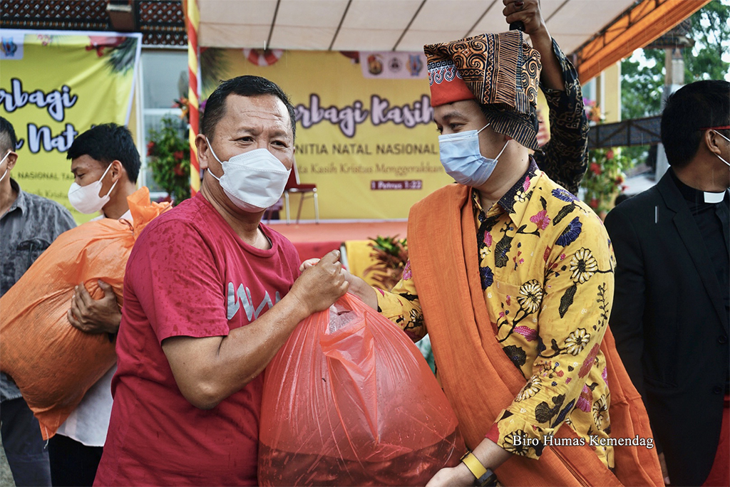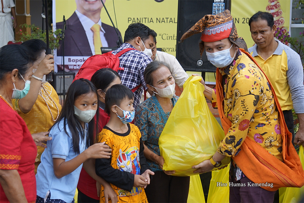 Pada kesempatan ini, Wamendag Jerry membagikan 500 paket paket sembako untuk jemaat geraja, anak-anak panti asuhan, pengendara sitor, dan kelompok masyarakat lintas agama, serta 60 ribu bibit ikan mas untuk warga Toraja Utara.