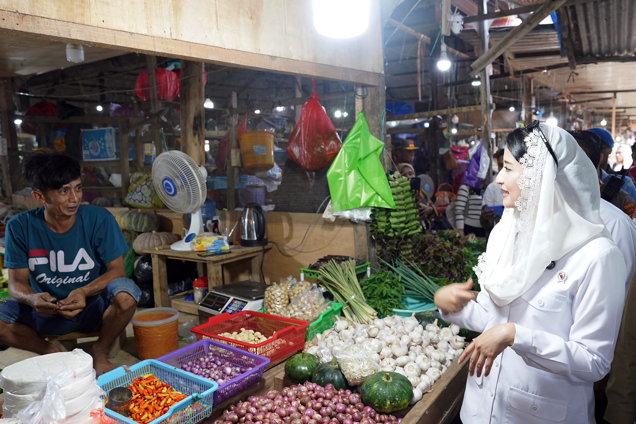 Wakil Menteri Perdagangan, Dyah Roro Esti meninjau langsung harga dan ketersediaan barang kebutuhan pokok (bapok) di Pasar Baruga, Kendari, Sulawesi Tenggara pada Rabu (8 Okt). Dari hasil peninjauan tersebut, Wamendag Roro memastikan stok bapok di Pasar Baruga dalam kondisi cukup dan harga stabil.