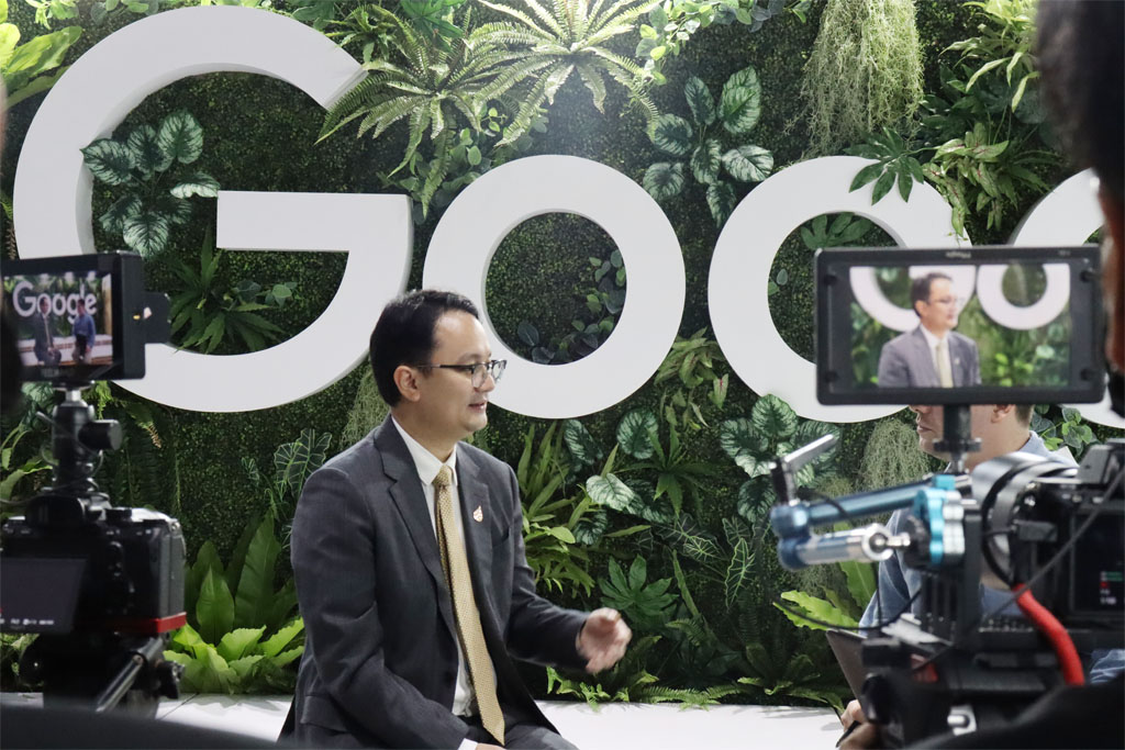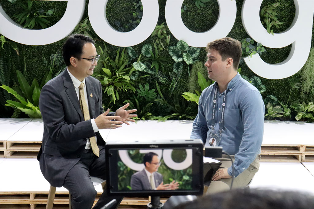 Wakil Menteri Perdagangan RI, Jerry Sambuaga melakukan wawancara dengan kreator YouTube Xiaomanyc dan Google di sela pertemuan Konferensi Tingkat Menteri (KTM) APEC 2022 di Queen Sirikit National Convention Centre (QSNCC), Bangkok, Kamis (17 Nov).