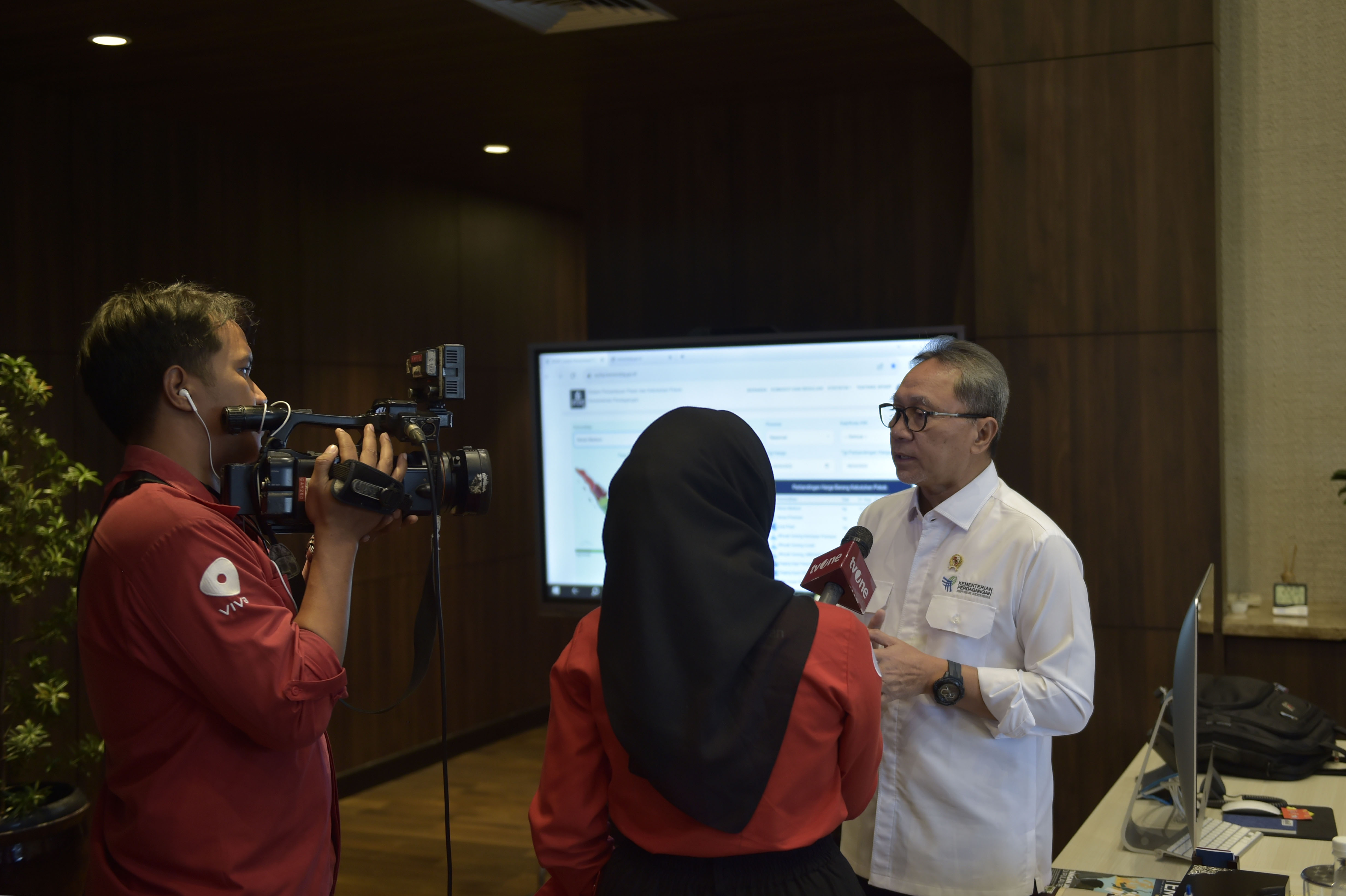 Menteri Perdagangan, Zulkifli Hasan melakukan wawancara dengan TV One yang berlangsung di Kantor Kementerian Perdagangan, Jakarta, Senin (25 Sep).