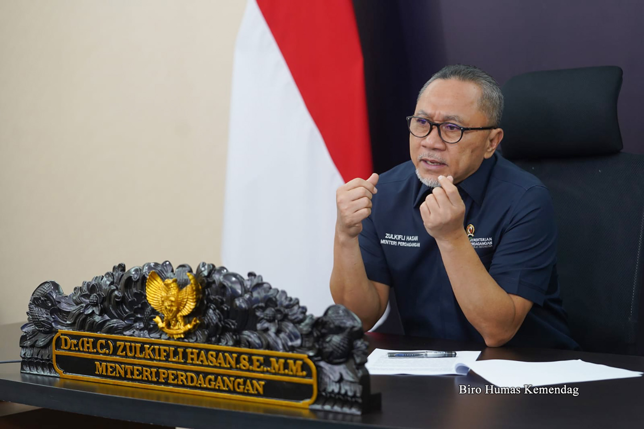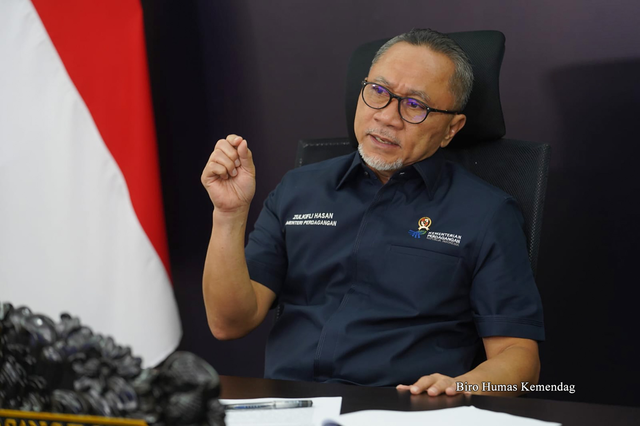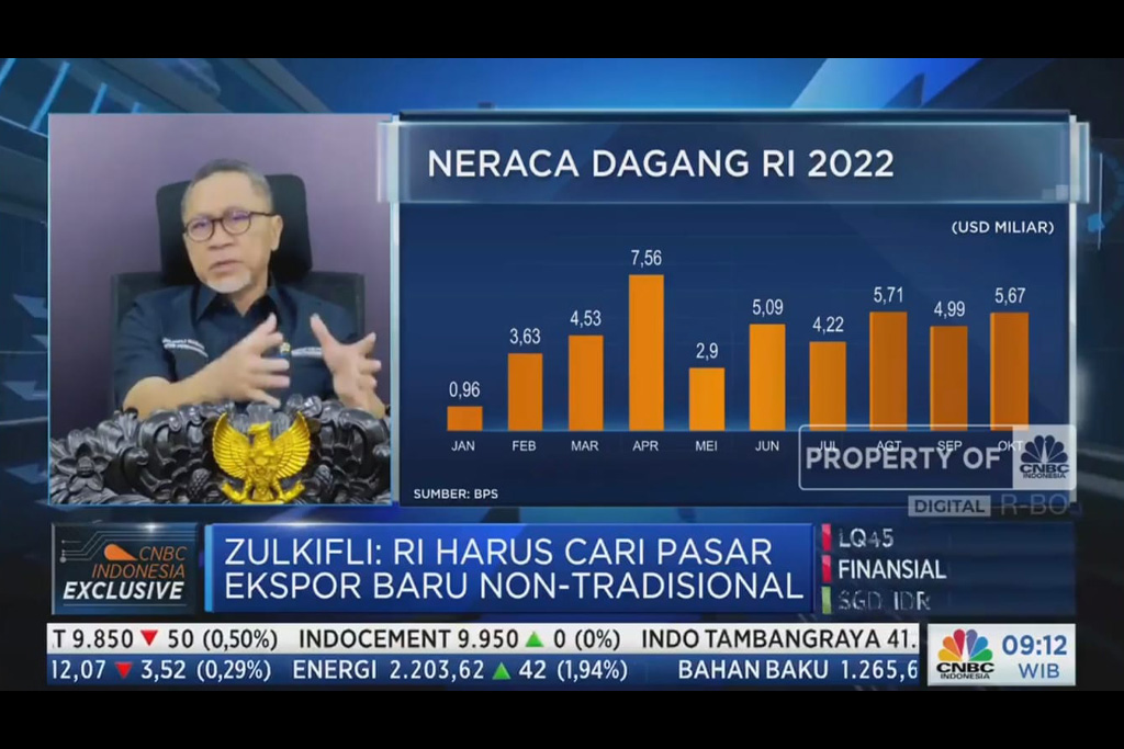 Menteri Perdagangan, Zulkifli Hasan melakukan wawancara pada program Squawk Box CNBC Indonesia secara virtual di Kantor Kementerian Perdagangan, Jakarta, Selasa (6 Des).