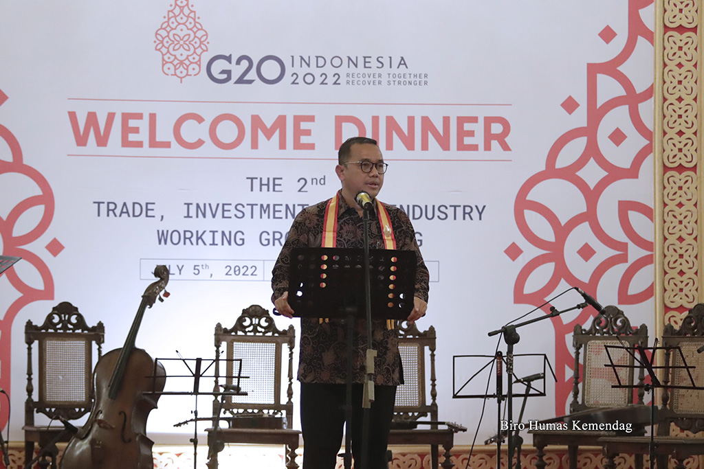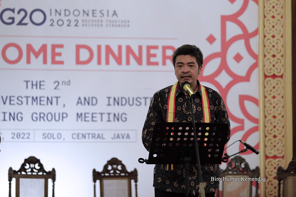 Pertemuan Kedua Trade, Investment, and Industry (TIIWG) G20 akan berlangsung pada 6—7 Juli 2022. Rangkaian kegiatan dimulai dengan welcoming dinner bagi para delegasi di Keraton Kasunanan Surakarta Hadiningrat, Solo, Jawa Tengah, Selasa (5 Juli). Acara ini dibuka oleh Deputi Bidang Kerja Sama Kementerian Investasi, Riyatno.